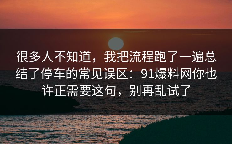 很多人不知道,我把流程跑了一遍总结了停车的常见误区:91爆料网你也许正需要这句,别再乱试了